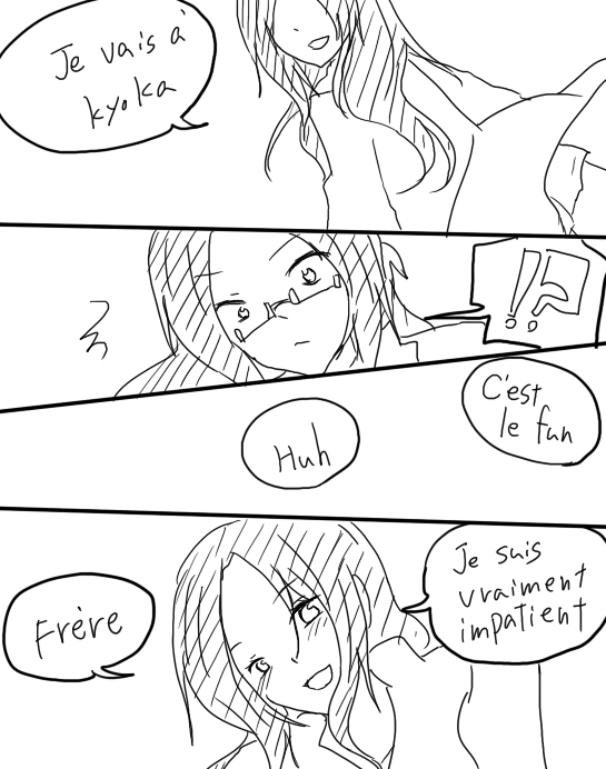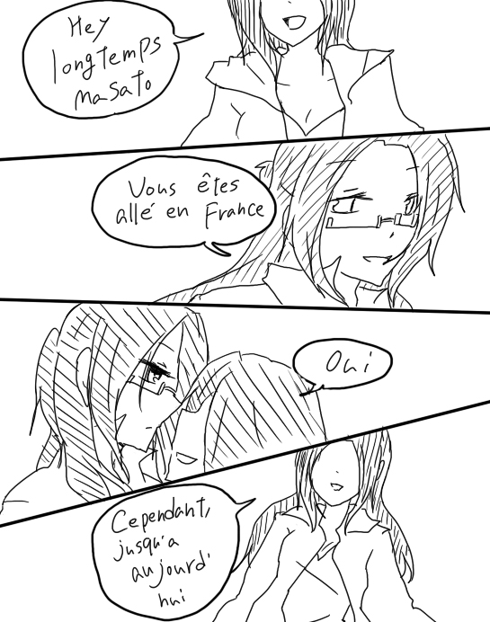 「やあ 久しぶり 真人」 「今回はフランスに行ってたんだ」 「ええ」 「でも それも今日で終わりよ」 「私鏡花に行く事になったの」 「!?」 「それは楽しそうだね」 「でしょ」 「ホント楽しみでしょうがないわ」 「お兄ちゃん」 |